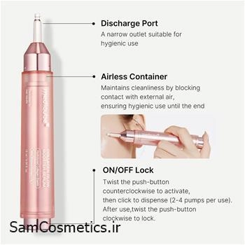 - 2 تا 4 پمپ از سرم را روی صورت، گردن و دکلته قرار دهید و به آرامی ماساژ دهید تا جذب شود.